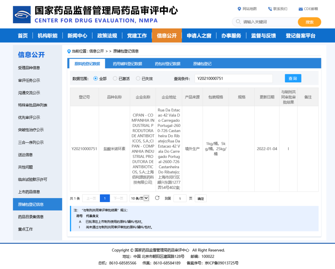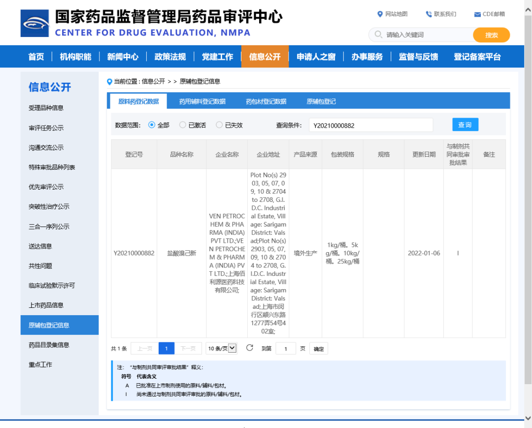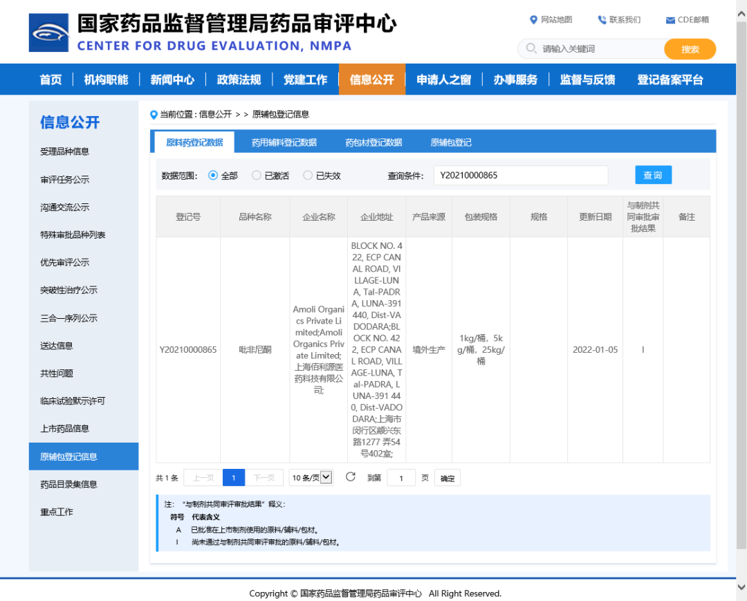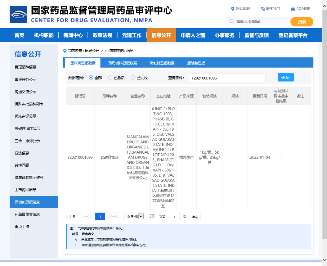 以下為新增待 批準(zhǔn) 原料藥詳情: