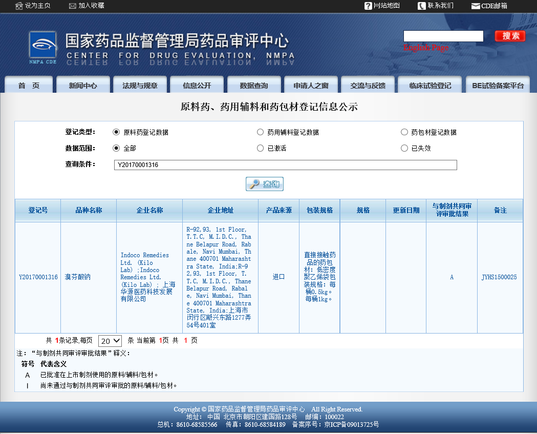 2.酒石酸溴莫尼定(Y20170000909),公示信息為"A"