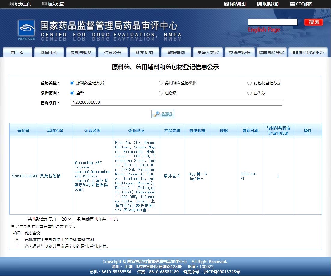 2. 奧美拉唑鈉 (登記號(hào):Y20200000898)
